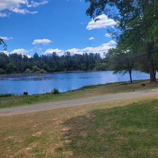 Beautiful lake, clean with a hiking path around the lake. Great restaurant also!! Campsites are not level but you can get sone right at the water for easy access with kayaks or other non motorized floating crafts. Geese are loud!!! Tons of frogs that croak all night long. Clean well stocked bathroom but no showers We hiked around the lake one afternoon and there was a mama black bear with two cubs!!! She treated her Cubs and watched us as we went by with one big dog and four people. She was about 150 feet away. Walked for a couple more minutes in a huge deer ran by and then came across a turtle and the path. I never neither were bears in Placerville ! Truly the only negative is the shower situation and the bullfrogs.
