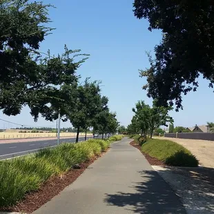 The trail starts at Franklin Blvd /Elk Grove Blvd and continues on to Whitelock Pkwy and ends at Wolf Pack Lane. The walking/ bike trail along Franklin Blvd is made of concrete. As you continue your journey through different neighborhoods along Franklin Blvd , the trail eventually turns to asphalt along Whitelock Parkway.Depending which end of the trail you start on, parking is available on either ends of the trail. Raleys Center on one end and Bartholomew Sports Complex on the other end of the trail. Trees along the trail are still fairly young so shade in limited. No rest area or bathrooms along the trail.