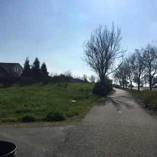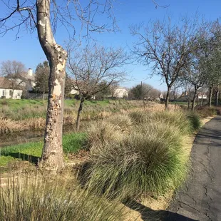 It's mostly concrete paved. Clean and seems safe when I was there. The creek trail section is not too long. The neighborhood has parks so you can walk there too. Park along Starbucks and walk over are a good idea.