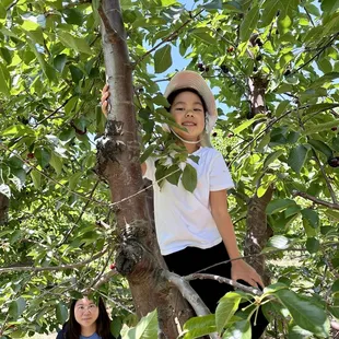 A boy in the cherry trees