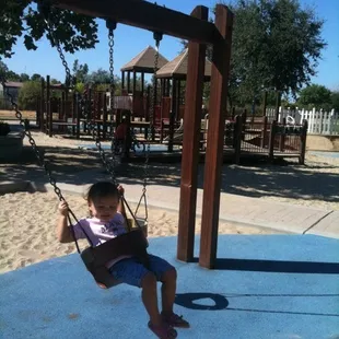 This park is always clean close bathrooms. my daughter loves it!! slides get hot though