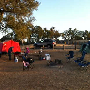 We reserved 3 spots in Big Oak Campground. It went very poorly. The weather changed so it ended up being 104-107 the entire time we where there. The camp sites where messy, broken glass, bottle caps (rusty!) burned beer cans in the fire pits, overgrown trees that hang down to 3' above the ground - it was so bad that I went to ACE hardware and bought trimmers and cut it back so it wouldn't damage my tent , or hurt someoneDue to the heat we ended up needing a lot more water, however on recreation.gov they don't tell you where water is at. It was in the middle of another camp area, on top of the hill. so we had to lug water up and down hills for a week. The water is HOT, running it for 5-10 minutes would not yield cool water below 90 degrees.Second issue that they don't say is these campgrounds are NOT FLAT, and have a LOT of vertical drop from one site to another, and from the road to the site, and parking spots. we're talking 5-10' in areas, and it's very hard to carry stuff up/down the slopes and not fall. The one bathroom/shower area was nothing more than a rest-stop style bathroom, with a shower head on a wall. The showers in the men's bathroom stopped working after the first night - it's quarter driven and wouldn't detect quarters, and then on full cold, it was about 100degrees. I suspect there is a above-ground pressure tank that gets cooked all day in the sun. This means you can't cool down AT ALL. The Women's bathroom had no lights. There was a switch on the wall, but it didn't work. There was a maintenance person that came by and we alerted them to it, and they said "oh yea it's been that way for a while, there is a work order, we don't know when it will be fixed". Fun side note, if any of the sewage pumps fail, they don't get fixed for years because they are so old the parts aren't made anymore. This is why some bathrooms are closed. We went knowing the water level was down. I'm used to having to drive to water and finding a spot that works to get in to it. NOT HERE. There is only ONE place you can access it - the boat ramp. The marina doesn't allow you to drive down, and you have to walk over half a mile up/down a steep slope. Over at the boat ramp, they have cemented large boulders /rocks around the water so people cant' access it. and the area where you can, it's a 30 degree rock face to go down.During one of the nights we had a Tarantula yes. the big ass spider, come out of the grass and start exploring our main food area... The ladies of the trip where NOT impressed.I've visited other lake camp areas, like Shasta, Whiskeytown, Berryessa and this by far was the worst trip I've ever been on.