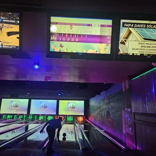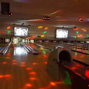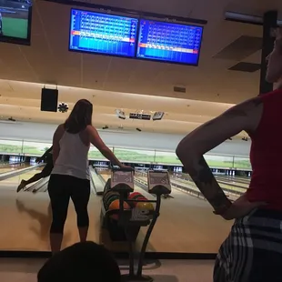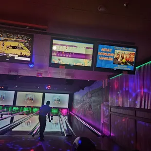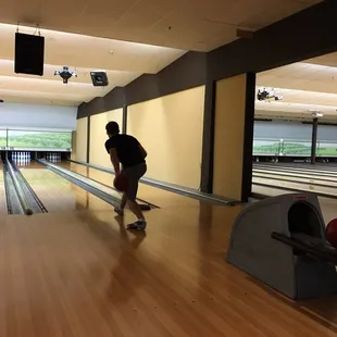 Bowling here is very expensive on a saturday night. It felt very "modern like", as there are lots ofled lights but the bowling system felt outdated. The bowling balls were very oily for some reason, and it was hard to find balls under 9lbs with big enough holes.