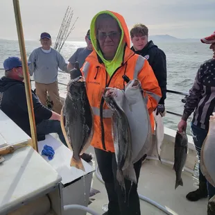 I can't say enough about this boat! Jonathan, Joey and all other crew are phenomenal! We've been out on this boat at least 15 times over the past 4 years. Halibut fishing, rock fish and ling cod, and my favorite, rock crab combos. Jonathan always puts us on fish. And we catch big ones! Joey is a master of netting or gaffing the big ones and will cleanly filet a fish faster than anyone! There is no one better in the business. Professional, knowledgeable and fun! You won't regret your day fishing on this boat! But you will be exhausted by the end of the day with a smile on your face and fish in your cooler. Pictures are from 3 different trips.