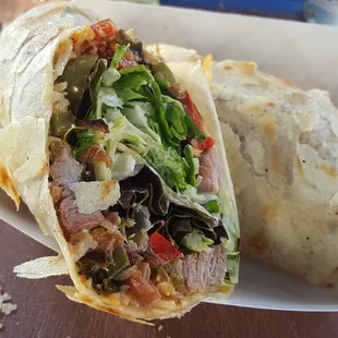 Finally got to try them this morning with the hubby. Ordered the breakfast burrito with tri tip and a second one with bacon. Loved the witty banter between the guys as they were cooking up their tasty food. Accidentally made me a chicken burrito by accident but quickly whipped up the bacon one for me and were generous to let us keep the mistake which my daughter loved as well. The roasted veggies inside were so yummy and loved the grilled tortilla with the extra cheese skirt he made to fix "the breech" in the tri tip burrito. Look forward to many more in our future; thank you guys!!!
