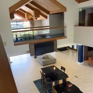 The exterior setup leaves a TERRIBLE 1st impression!!! There are NO free spaces to park at in the front!! Parking is in a lower level garage. The room size is fabulous, but the couch in the room is way TOO LOW!! The TV is a 40/48" . However, it has no streaming channels like Netflix or Amazon. I couldn't attach my phone to the HDMI because the remote has NO INPUT button!! The kitchette has NO plates, cutlery, dishes, bowls. Regrettably, it has soooooo much potential, but tremendously disappointing.