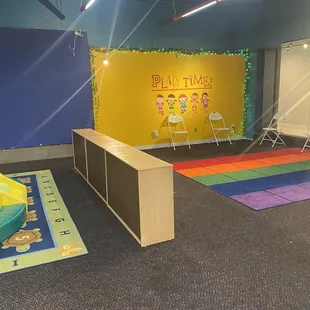 Seating area in front of a toddler play area (Hey Dads, tried to not get you in the shot! )