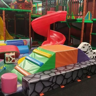 I came here after walking by it on the way to the bathroom. Space had few kids and parents so it looked spacious. Plenty of random things to climb on and slide down from. The play structure is like an obstacle course. Several jumpers up against a wall. My kiddo enjoyed the play structure and climbing all the different areas. On my first visit staff did their job and we got in and out in a breeze. The second visit I was told only one parent could come in. Which was a bit confusing as the first visit both of us were allowed in and every family in there had both parents. Their signage says 2 adults free admission with paid child admission. So it didn't make sense to me. It was busier than the last time I visited so if capacity was the case they should advertise that on their signage. It's misleading. The second visit I just stood outside for the hour playtime watching my kid play. Staff is all up at the front handling customers and putting on wrist bands for the child and parents for when their time is up. They have special grip socks you have to wear inside which you need to purchase and repurchase if you don't bring them the second time. Staff doesn't walk around to check the space out or monitor the area. Everyone's just chilling up in the front. Parents aren't allowed inside any of the play structures so if your kiddo can't guide themselves this is not the place for them. Best for kids age 3-5. It's too small for older kids to enjoy. I'm pretty disappointed in this past visit but in the future I know even if it's not on display only ONE parent can go.