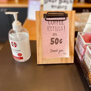 a potted plant and a hand sanitizer