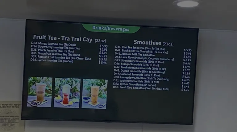 Amazing sandwiches, I got the BBQ chicken and dad got the #1 w pate!The bread is extremely fresh and we went at a weird time, almost 2:45 p.m. and it was still really crisp. We also got iced coffee and green tea with lychee Highly recommend. Also nice tV w good sound.