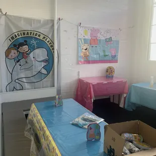 We rented out imagination playhouse this past weekend for my son's 3 year old birthday for two hours and had the best time! The ladies working that shift were so helpful in carrying in some items from our car to offering to help blow up the balloons I bought but hadn't gotten around to filling, they even assembled an impromptu ballon arch!! We did bring our own table cloths and decorations, utensils and beverages (ITs byob if you choose this route) then we ordered a cake and pizza from the neighborhood. At the end the ladies took care of the cleanup as well we just had to pack up our stuff. A perfect easy birthday experience, the kids were obsessed with the play structure. It was really nice having the place all to ourselves.