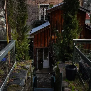 The stairs to the hotel rooms