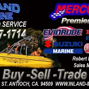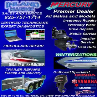 Brought my Bayliner Capri here for multiple things since I had just purchased it. Everyone was super cool and dropping the boat off was easy. Frank called me with everything that they had found and fixed it all for a fair price. About 2 weeks later I had a problem with the stern drive trim so I called frank first thing Monday morning and he told me to bring it in to look at. I dropped it off at 830 and he called me at 1130 when it was fixed. An un related wiring problem that they fixed for free. Thanks inland marine and frank for your help. I'll be back