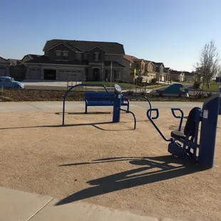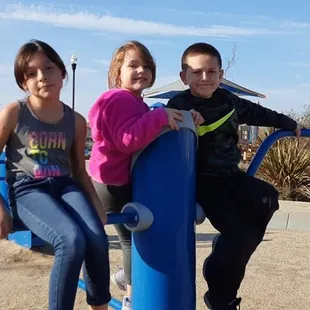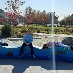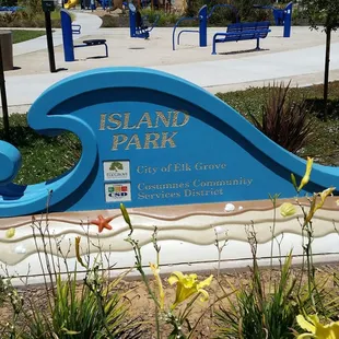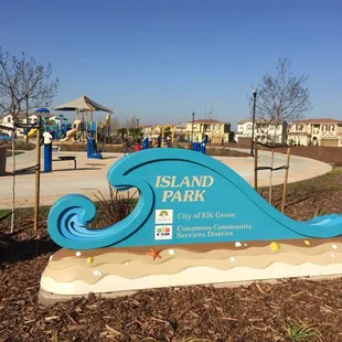 Why weren't parks like this when I was growing up ! Theme parks are so "Cool". This one happens to be life on and around an island. To start off with, the park itself is circular in shape just like an island. Islands are usually surrounded by water but in this instance the park is surrounded by homes. This park is just a few years old, completed in 2014. The City of Elk Grove & Cosumnes Community Service District jointly coordinated their efforts to design this fabulous park !The park was built for the whole family to enjoy ! Exercise equipment, 2 separate play area with swings and climbing structures, sand box, shaded structure with multiple picnic areas with BBQ's. The only things that this park lacks in that there are no restrooms and very little shade ! The trees are still very young but in time will provide ample shade.With all the sea life scattered throughout the park this can be a very educational experience for young children as well as for adults.