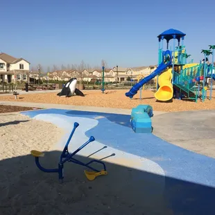 I LOVEEE island park! The sea theme is sooo wonderful and perfectly executed. There are so many sea creature details and also so many different areas for playing and climbing. There's two large playground structures and even a little pirate ship area.. and a sandbox area!!! And that orca is sooo huggable. I came during the fall with my friends, and the surrounding trees become soooo beautifully red and orangey. Very clean place overall too. Lovely setting to picnic at!