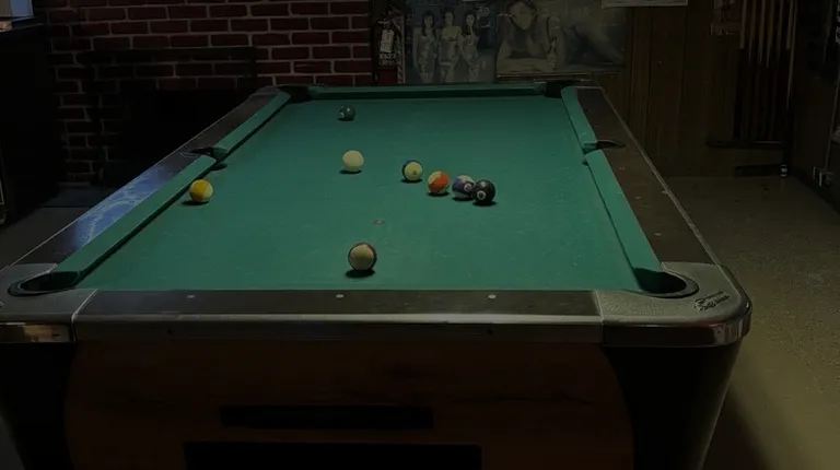 a pool table and bar