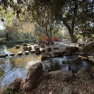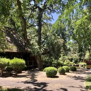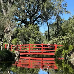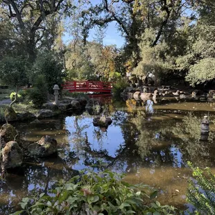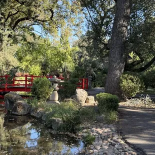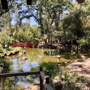 Ivy R's review inspired me to visit this garden. I doubt I would have wandered to this part of Lodi if I had not read it.When you pass through the garden gate it is like going into another world. It was so quiet the only sounds I heard were chirping birds and chattering squirrels when I walked in. There are numerous stone lanterns, flowering plants and cherry trees. A red bend bridge crosses the pond that is home to very large koi. Ancient towering Valley oaks surrounded this small beautifully maintained garden. I would suggest that you bring mosquito repellent. The blood suckers were annoying in April; I imagine that they would be unbearable later in the year. Do check the hours, the garden is not open all day. It is also a popular wedding site and the garden is closed to the public when there is a wedding in progress.