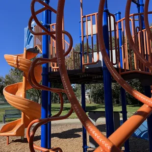 One of the best parks in ELK grove when it comes to the play structure. Unique and so many cool things to climb on. My kids loves it and I had fun too. It's breezy and somewhat secluded. No bathrooms FYI.