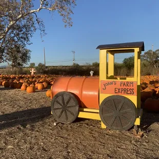 A pretty cool place for pumpkin patch.A good amount of pumpkin to choose from. They also have a store to get some goodies: small pumpkins, sweets etc.There are some trees to kinda climb into.They have a little food area. Pricey as expected but food wasn't bad.Bouncing castles, little train, maze and other games are available for a fee. My son and cousins enjoyed them.Went here on a weekday so it wasn't crowded. They have a large parking on dirt so be careful with uneven walkway.