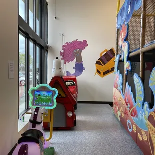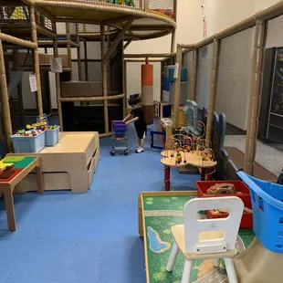 Lots of things to climb and crawl through, and there's a trampoline section. However, the ball section was closed, all the moving toys (vehicles) were broken/missing parts. I also question the cleanliness of this place. The children's rotating/merry go round swing is in a horribly dangerous spot in the toddler section, leaving very little room for people to get by without getting hit by a kid on a swing. My toddler and friend's toddler both got fully knocked over when other kids were on it. I wasn't impressed with the place and likely wouldn't return.