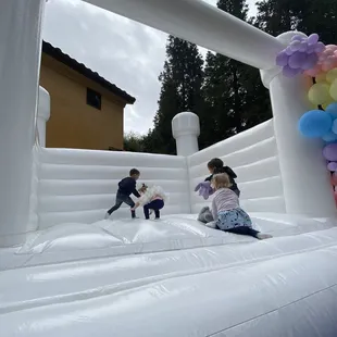 White luxury bounce castle in Livermore.