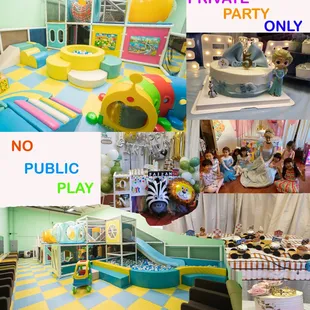 We had our daughter's first birthday party here. The playspace is great--all the kids really enjoyed it (ranging from ages 1-12 for reference). The parents enjoyed it as well because (1) we had the venue to ourselves so it wasn't like we had to be chasing after our kids to keep track of them & (2) the playspace was nice & catered to all ages. HOWEVER, there were several things we didn't like:(1) Honestly overpriced because the venue overall is EXTREMELY small & customer service wasn't outstanding--we had Bluey playing on the TV but she kept turning the volume all the way down to 3 it wasn't like lowering the sound a little, we raised the volume high enough for the kids to hear it.(2) Had we not brought our own decor, we would've been stuck with the most random decor that wasn't AT ALL cohesive (Paw Patrol table cover, pink & gold table cover, different themed balloons, dog on the door)(3) The music playing in the playroom kept stopping & I kept having to ask her to replay it cause she wasn't aware of it(4) Clean-Up is supposed to be 15 mins prior to party end time but she shut the door to the playroom 30 MINUTES PRIOR TO & the kids would try & go in & she KEPT shutting the door. Our daughter told me about it & I told the lady it wasn't even cut off time yet. And honestly even then, because of how extremely small the venue is, it makes more sense to leave the playroom door OPEN DURING Clean-Up time so that the EXTREMELY TINY party room dining area is NOT PACKED with ALL the adults & kids because it makes it SO MUCH HARDER to clean up & pack up! (5) We also got many complaints from our guests about how rude she was to them especially towards the end of our party time.Overall, I definitely wouldn't recommend this venue unless your party size is less than 20 ppl total including both children & adults. But even then, it's very overpriced & you wouldn't get your money's worth with the service experience & efforts. If the venue were a bigger space, like the dining room area, then it MIGHT be tolerable but I wouldn't recommend.