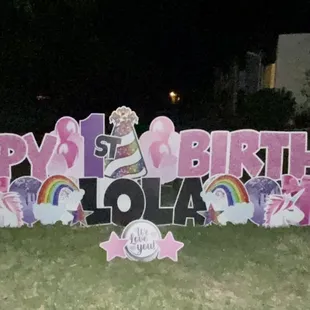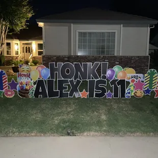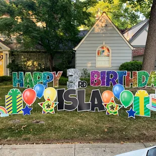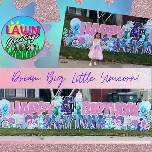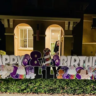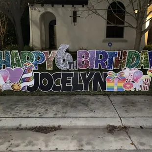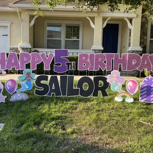 We decided to use Lawn Greetings of California for my step daughters 9th birthday . She had mentioned that she wanted yard signs and of course we had to make her bday wish come true. We reached out to the owners and they responded very quickly. We have a fairly small front yard and we were worried it wouldn't fit. They sent over some pictures of what they could do. Well, they far and exceeded my expectations. It looked AMAZING. And the birthday girl was overjoyed. We will be definitely using them again in the future.