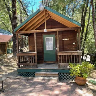 This place is great! You can rent a mini house! Ours came with a bedroom and a full size bed, linens and pillows. (Might want to bring your favorite pillow and blanket). There was a shower with just enough hot water! A marble counter kitchen, keurig, microwave, fridge, air conditioner ( late summer you will neeeeeed it)A lazy boy couch (yas!), TV.There is a deck with bbq grill (bring charcoal ECT)My tip: Bring a pan, oil and any real cooking items. They try. They really do. But don't be stupid. If you need that certain thing... It's not there. What they have: Nature, Ambiance. There is a club house! In the club house is a man made boulder swimming pools, and a hot tub that is big enough a grown man can lay across. There is a pool table, karaoke upstairs, bathrooms.What it's not: Perfect. If you need that go to a hotel. Bugs: It's pretty much the sierras. Bugs live here. They didn't come inside. But they tried. Hot tip: check out natural bridges, just Google it. It's a short hike down the ravine on a safe trail. Try not to go on a day it's 107 like we did. But it's amazing. Your kids will think you are so cool. Save some water for the doom hike back out. Bring a walking stick and floaties
