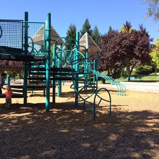 Great park. Has 2 structures neither for very small children, but ok for walkers. My daughter loves this playground. She has been going there since she was 1 1/2 or so. There is a walk way around the playground and seems like fun.There is also a field next to the playground to fly a kite or just run around.It is also a good picnic place, because even though the playground is not shaded, but there is a lot of shade around the playground.