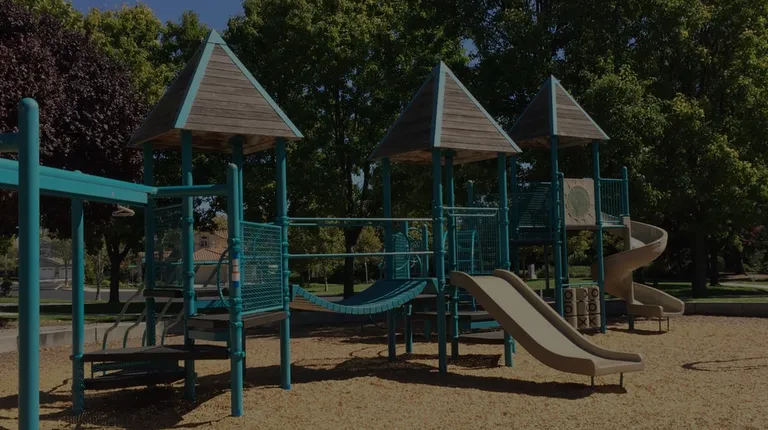 This is a nice, clean park in a quiet neighborhood. Play structures include swings for big kids and tots, double-wide slides, spiral slides, "zip line," swinging bridge, tic-tac-toe and varied climbing-type pieces, with bark chip flooring. Parents will enjoy the shaded seating adjacent to the play equipment. Also has a basketball court.There is a wide paved path all around the park, perfect for kids learning to ride tricycles,, bikes, etc.