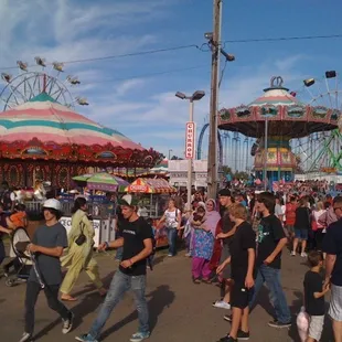 Came here today with my husband (free admission today from 12- 5 pm today) because we just happened to be in the area and thought about checking this out. I would have to say that this is definitely smaller than a county fair. There is your usual carnival/ fair rides and food on a stick and deep fried (although I am pleasantly surprised with some healthier food choices like a chicken or Khalua pork plate from the Aloha Diner and gyros and Greek salad from the Greek food stand). There is a small area for vendors inside an air conditioned room and some vendors outside as well.Liked the displays and art projects, photos, etc made from students and adults.Liked that there is wine tasting opportunities as well (after all, this is the grape festival). Although parking is $5, we were able to find plenty of (free) street parking within a close and reasonable walking distance. Overall, thought the fair was just okay, nothing really exciting and memorable about it. Would have been disappointed if I had to pay for regular $9 admission price, but was worth a visit for getting in for free.