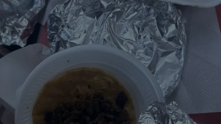 Best damn tacos you'll try. The food is amazing it's self serve to dress the tacos and the sides. Try it.