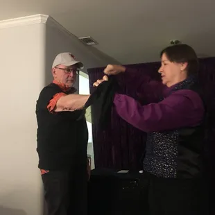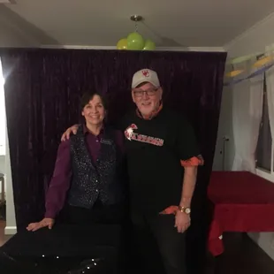 I hired Mary for my husband's 50th birthday party. She worked her way around the groups of people and was very engaging. All the guests really enjoyed her magic!