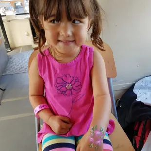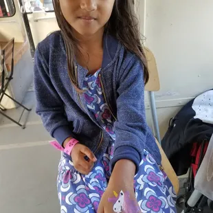 Very talented nice and funny person ..will be hiring her again got along with everyone, kids adults and we couldn't stop laughing. She has an amazing pick of colors and glitter and she was able to get everyone in the party!!!!!!