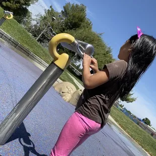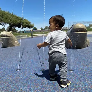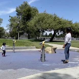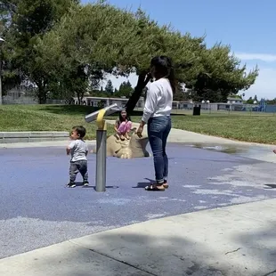 Visited this park with my daughter and 2 year old grandson last Sunday. It wasn't overly crowded which was nice. Everyone was friendly and my grandson had a blast. The water cannons were working and he just adores water so he was happy as a lark. He spent most of his time in the water. I didn't know how the water worked but someone else was there and said to press the top of the yellow pole with the black cap. It seemed to work so a word to the wise. The reason for the 4 stars was cleanliness. The park was great but there was garbage lying around, this isn't the parks fault but I am amazed at how many people can't find the garbage can at the park.