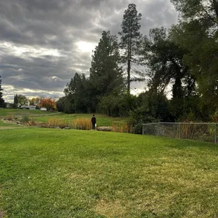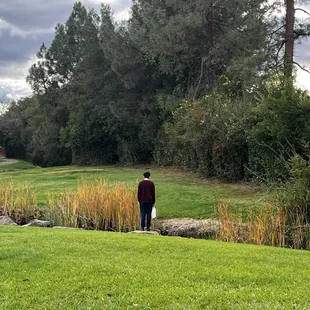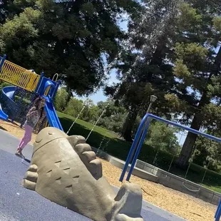 This park is beautiful and I loved that they have water features and turning it on for the summer ahead yay!! Can't wait to take all our friends here. There is a pond over the hill or creek? The trees are big and seem like a great place to take pictures. Small parking but I guess street parking is available. It is behind a school so probably during school days it's loud in this area.