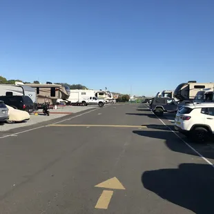 Ugh. No. Don't come here. We have a large motorhome and this is a very tiny parking lot. Look at the satellite images and you will see. There are live-ins here with their stuff spilling out of their ten to 12 foot wide spaces. Very hard to park. On the good side, though, you are near San Quinton and the bay and the ferry. You can Uber to nearby places. I would much rather stay in Candlestick Park RV where it is easier to park and you have a bit more space. I get it--space is a premium here--but I can look directly into my neighbors window and if I reach out, I can touch her coach from my door. That's too close.