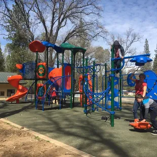 Perfect pit stop on the way to Yosemite! One adult went to Mar-Val across the street for groceries, the other took the kids to the playground here to burn off some of that pent up car ride energy. Playground equipment is in good condition and there are picnic tables around it as well as lots of grass. Plenty of parking, a youth center, and a little museum, with old/replica mining equipment for some little educational moments for those inclined.