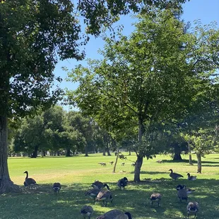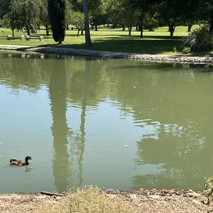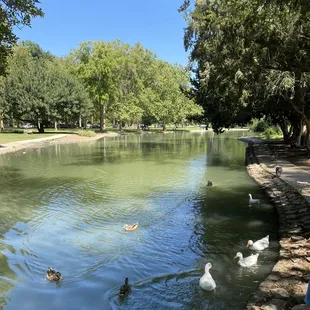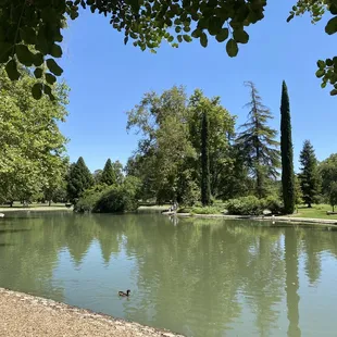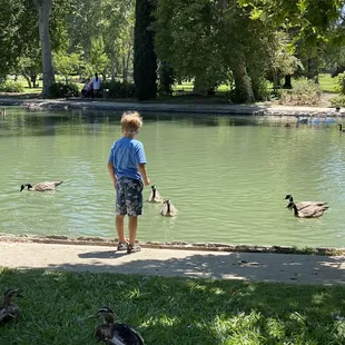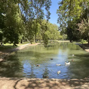 Located within the north end of vast Land Park, this rather large pond is a peaceful and pretty little getaway, both for children and those just looking for a little spot to space out. It is a pond filled with ducks, so you get all the pros and cons that ducks bring, but it's in a lovely corner of the park that few who don't regularly visit would know about. I'm writing this initial review during the time of COVID-19 when it's become a creative exercise to find new ways to entertain my quarantined 5-year-old. He loves animals and he loves the outdoors, so when I mentioned feeding the ducks, he lit up with excitement. There are ducks aplety here. All colors, shapes and sizes - and I'm not describing the healthy portions of poop they leave everywhere. We grabbed one of the many benches and sat there feeding them frozen peas for hours (Note: I found out bread is bad for ducks and swells in their stomach. A cheap bag of thawed frozen peas goes over just as well!). After the feeding, we wandered around the edge of the pond and found it surprisingly large. There were other folks there with kiddos, a couple joggers and the occasional napper escaping the heat in the shade of one of countless trees. If you're like me and looking for a different sort of park experience on the opposite end from Fairytale Town or the Zoo, this serene pond is one of your better options. Come enjoy one of the countless features of our Sacramento parks system!