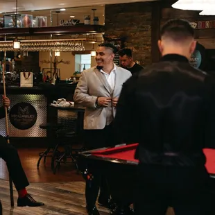 a group of men playing pool
