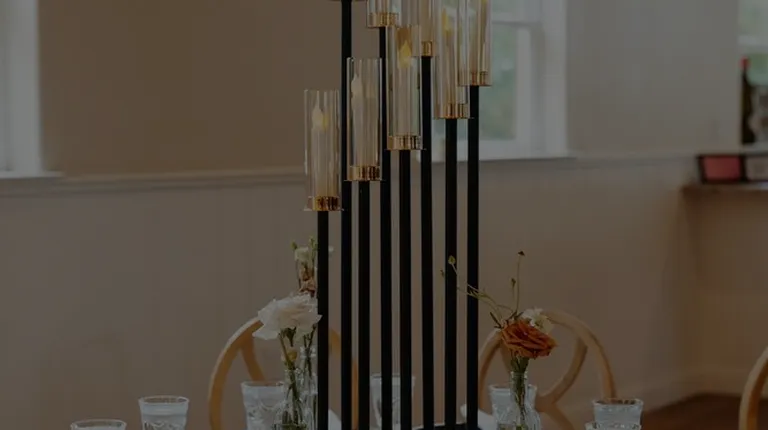 a black table with white flowers