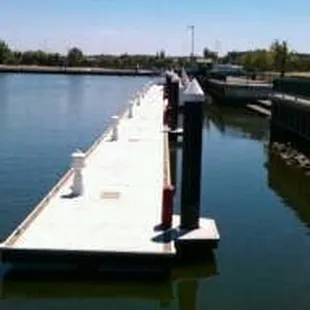 This lake is attached to a channel that heads out to the Delta.Small by any standard. Murky green in color but I did see some small little fish swimming along the rocks at the edge. Must be a good nursery for little fishy's.I saw a young man scouting out his spot for fishing but it was 100 degrees outside. I cant imagine fishing in that heat is very fun. I also cant imagine what fish could be caught in there?There is a small marina in the lake. Which you come up to and dock your boat and walk up the park above. Lexington Waterfront Hotel overlooks the lake which makes for great views. Makes you almost forget your in Stockton.The Webster Event Center is also adjacent to the lake. I didn't go over there but from what I could see that side was the more family friendly park side with shade trees, play structures and bike trails.Its a nice little nook in the City of Stockton.