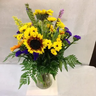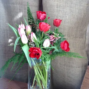Michelle did a beautiful surprise no special occasion bouquet for my wife . I just asked her to use whatever was fresh and the result sure was awesome Didn't cost much either and it was a huge bouquet . I know Michelle will be getting repeat business from me and also my wife's office where it was delivered and was a huge hit .