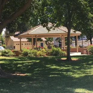 Shade in surrounding area and gazebo. No bathrooms. Two main play structures. Tennis courts. Basketball court.