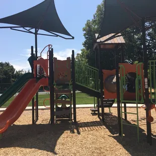 Perfect park for picnic and to let the kids play. No sand or dirt all bark, what mom doesn't love that!