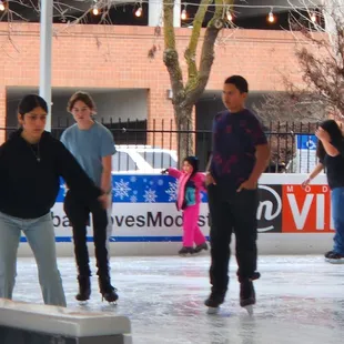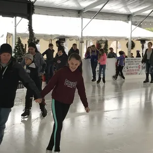 We came with some friends to expend some leftover holiday energy. This is a cute little rink, they have a little snack shack with a some light snacks and drinks, and the service is friendly. The music is upbeat and the decor is very lively with Christmas trees and lights.I love that they had outdoor heaters for me to warm up while I watched my friends and family and took pictures.This is a great little family friendly place and the folks running it were very welcoming and kept it clean and organized. It was a hit with the kids.
