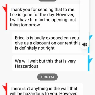 been here for years would not recommend.if there is a leak and they discover it. they will leave you like this and deal with it the next day. did not cover exsposed hole. i have a daughter that lives with us. we are trying to save money to buy a house or else we would of left years ago. front desk harrases tenants for the smell of marijuana with no offical complaints and or walk throughs.makes unprofessional assumptions and accusations. all messages all from front desk erica !