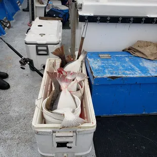 Great trip on the bay for Striper and Halibut. Cool in the morning and then it got hot on 4/18/19Striper limits early. 30 for us 15 on board. The Striper were boiling after bait fish. Others charters and private boats were on them too. Our Captain was on em'. The birds were too.The Halibut were sparse. Only 6 were caught on our boat and the largest was 7#+. I got one.No live bait yet.The Skipper of this boat and the deckhand make these trips possible for their patrons (other skippers & crews of the Emeryville fleet do that do the same deserve the same recognition), from (preping the boat and maintenance) untying from the dock in the morning and then getting the patron fisherman back safe.The 14 other people that I was on the boat with did a great job at keeping any trash from going adrift on the boat and overboard into the ocean.Attached is a picture of trash that was collected in a trash can during the single tripl of the day. The K-9 dogs that are part of the crew are a pleasure to have on board during a trip out to sea.