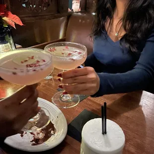 drink- Stowaway (left) food- Chocolate Flourless Cake (middle) drink- Rasberry Lemon Drop (right)