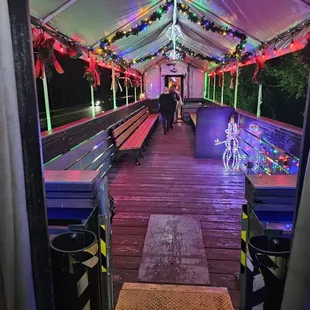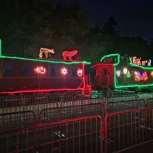 I have heard so much about the train of lights so I had to check it out!Tickets sell out fast and honestly, I didn't realize it's just the train that's decorated. There's not much to see on the ride.It happened to be a wet and rainy day we rode the train for the 730pm departure. We started lining up at 630pm. It gets really crowded and cold waiting in the rain. As the train drives by, you can see all the lights and decorations on the train. The interior is also decorated. It is definitely very festive. On the train, they have hot chocolate, hot cider and snacks. The snacks reminds me of stuff from Costco. The hot cider tastes like apple pie and the hot chocolate wasn't bad. There's two restrooms near the food area so it can be crowded. There's closed and open sections of the train. Windows cannot be opened. You can walk up and down the train to check things out.At certain turns, there are better viewing to see the entire view of the train, this is best viewed from the open carts. Santa Claus also visits so it's definitely very festive. My kids enjoyed it even though I was expecting more but I imagine little kids might find this fun. I wasn't thoroughly impressed. I do recommend bringing snacks and food instead of buying the snacks on the train.Parking can be difficult, the parking lot is small but there is overflow parking in some dirt lot. So we were luckily able to find parking, it can feel tight but I imagine there should be enough parking nearby.